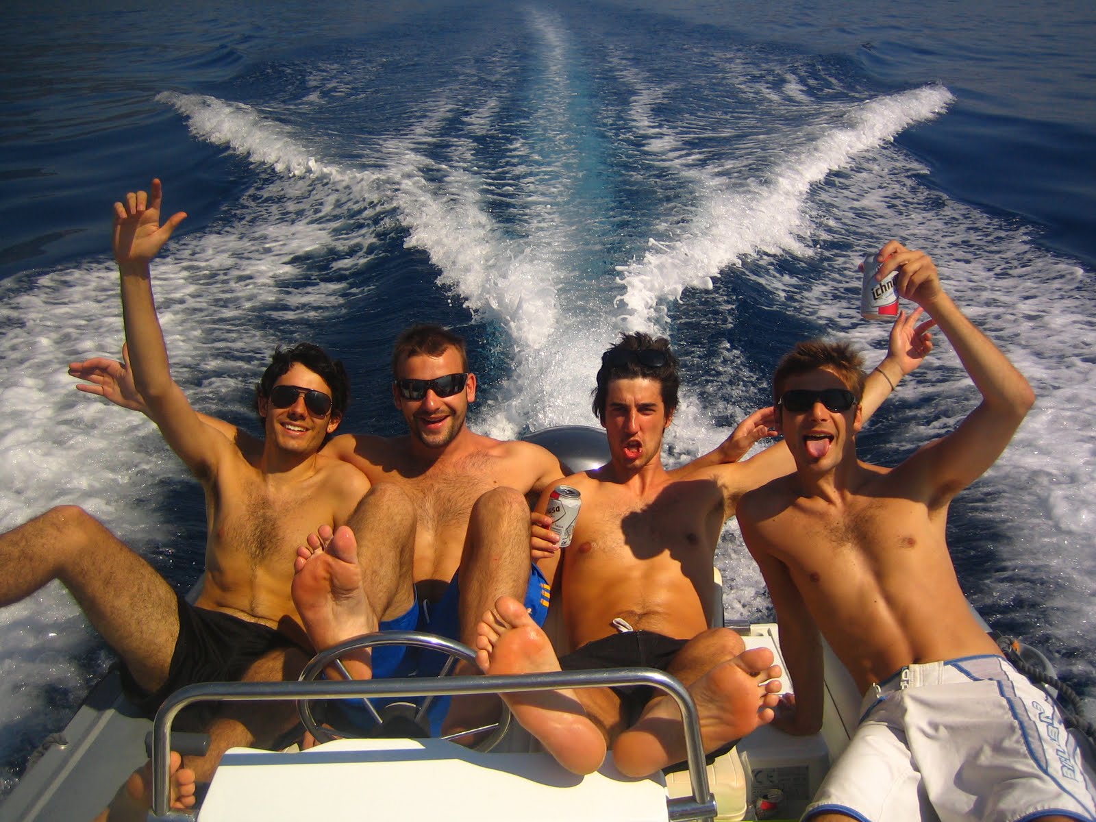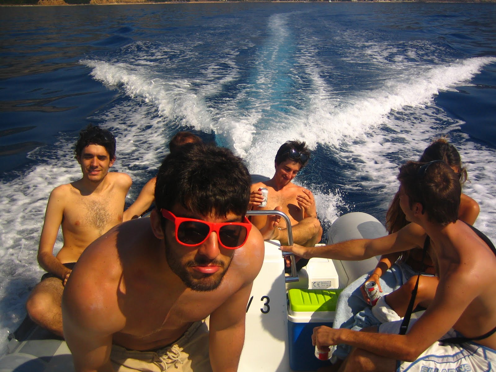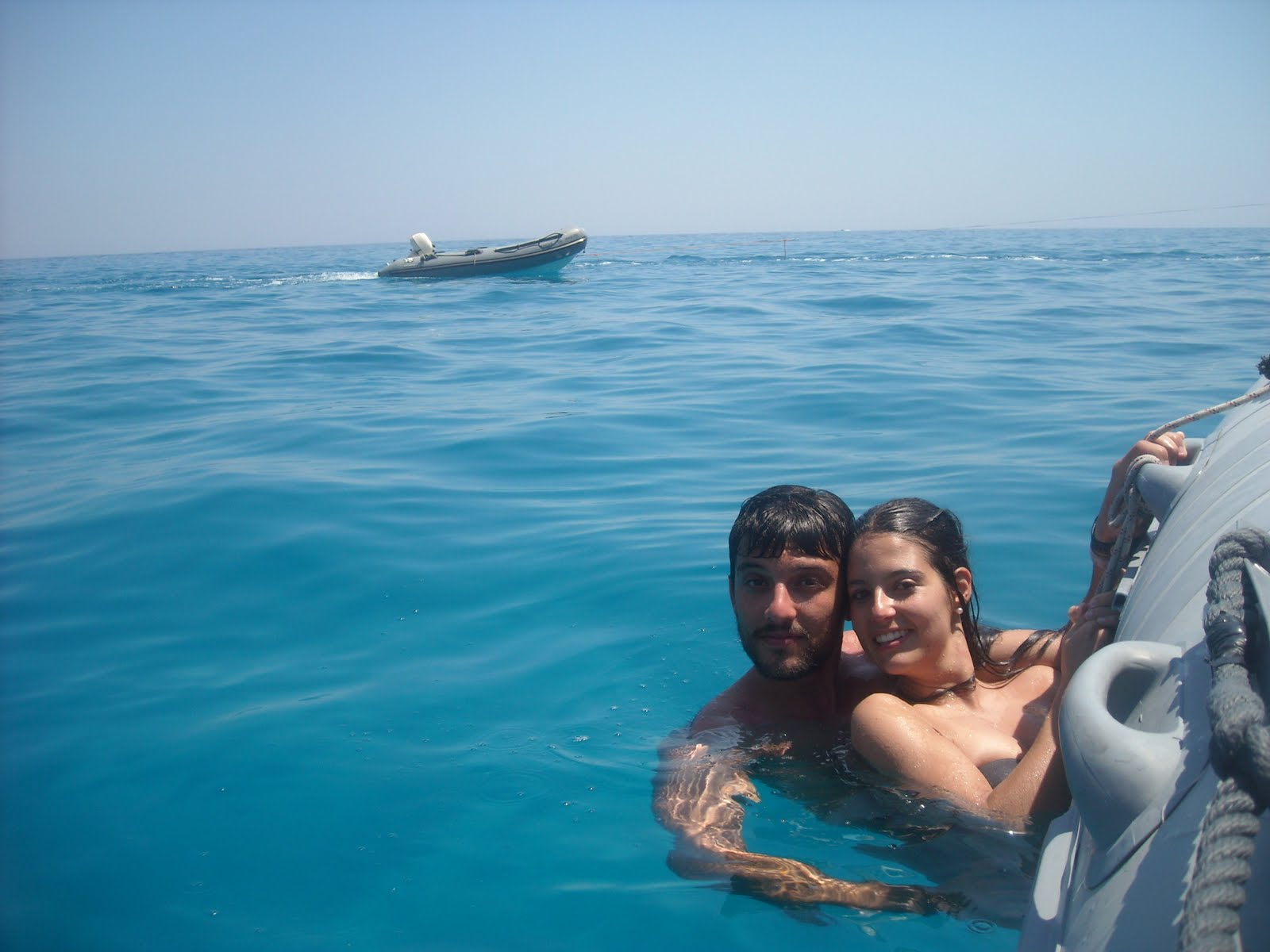Al dia siguiente,tras dormir de lujo en los bungalo, del "remember de shower" y cocinar para mil fuimos a coger con nevera incluida nuestra ansiada barquita. Este dia fue meraviglioso, con amigos, con buena compañia, barca, playas increibles, sol... fue uno de los mejores dias de la erasmus sin duda. Despues de ver un pez espada, un pez volador, un delfin en el agua no se como me atrevi a tirarme al agua a 300 metros de la orilla.