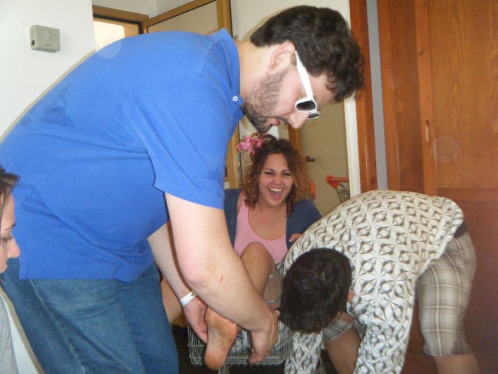 Para entrar en la casita teniamos que subir unas escaleras, entre el mas grande de toda la erasmus 'el Pani' y yo bajamos a la guiri, no veas como pesaba aunque con el pani era facil,jeje. Pasaron muchas otras cosas que no puedo comentar por aqui aunque... las cuento ,enga,jeje. Una de las noche davi y yo nos equivocamos de cuarto y vimos que no era el nuestro pq habia 3chavalas durmiendo alli asi que volcamos la cama de una y nos fuimos corriendo,jeje(eso ocurrio la primera noche). Otra cosa es de la ultima noche que entramos en la cocina del complejo donde solo habia queso,jeje no habia nada ni en los frigos,jeje claramente despues de comer queso a rebentar el sobrante lo tiramos por la ventana de las fiesta de las guiris (la de los globitos).