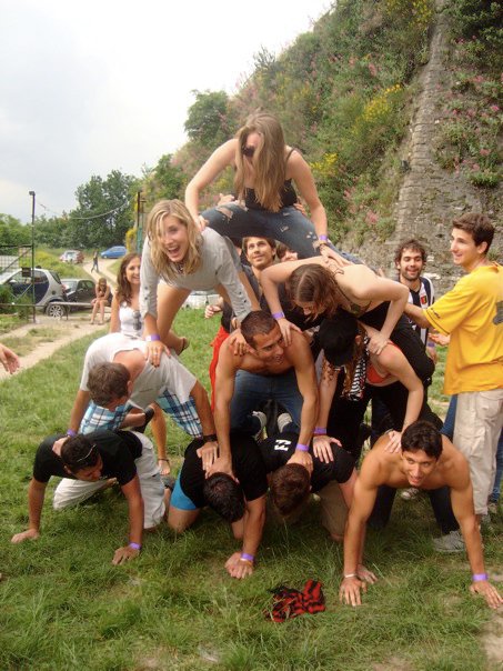 Haciendo una buena piramide humana, yo estaba ahi haciendo cosquillas a Neville que esta a mi izquierda, se meaba,jeje.