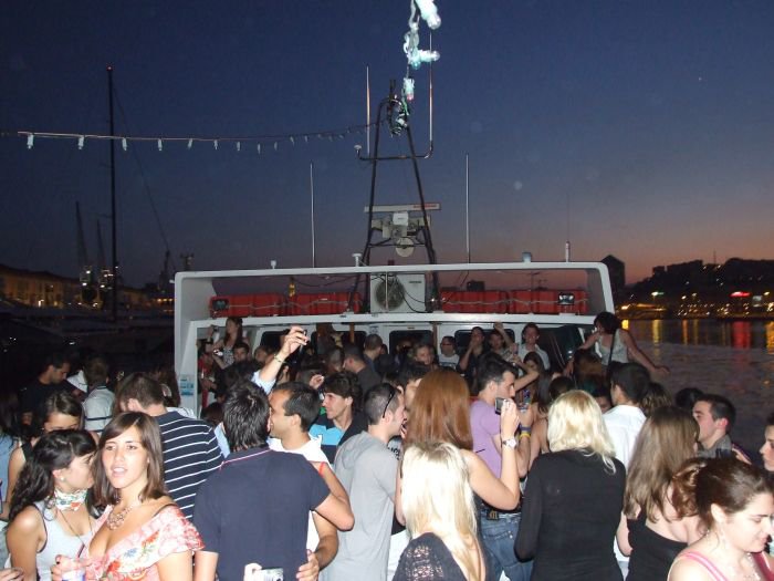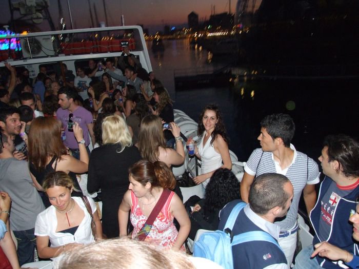 Tambien se puede hacer una fiestecilla en un barco por la noche,jeje. Fue ayer viernes por la noche y aunque fue un pequeño timo pq no llegamos al puerto que debiamos y no paramos fue una fiesta buenisima. La verdad es que de noche dar una vueltecita en barco y ademas con cientos de fiesteros dentro no está nada mal,jeje. Esta es la unica foto que tengo por ahora, aunque no se vea el barco ya subiera alguna cuando las encuentre.