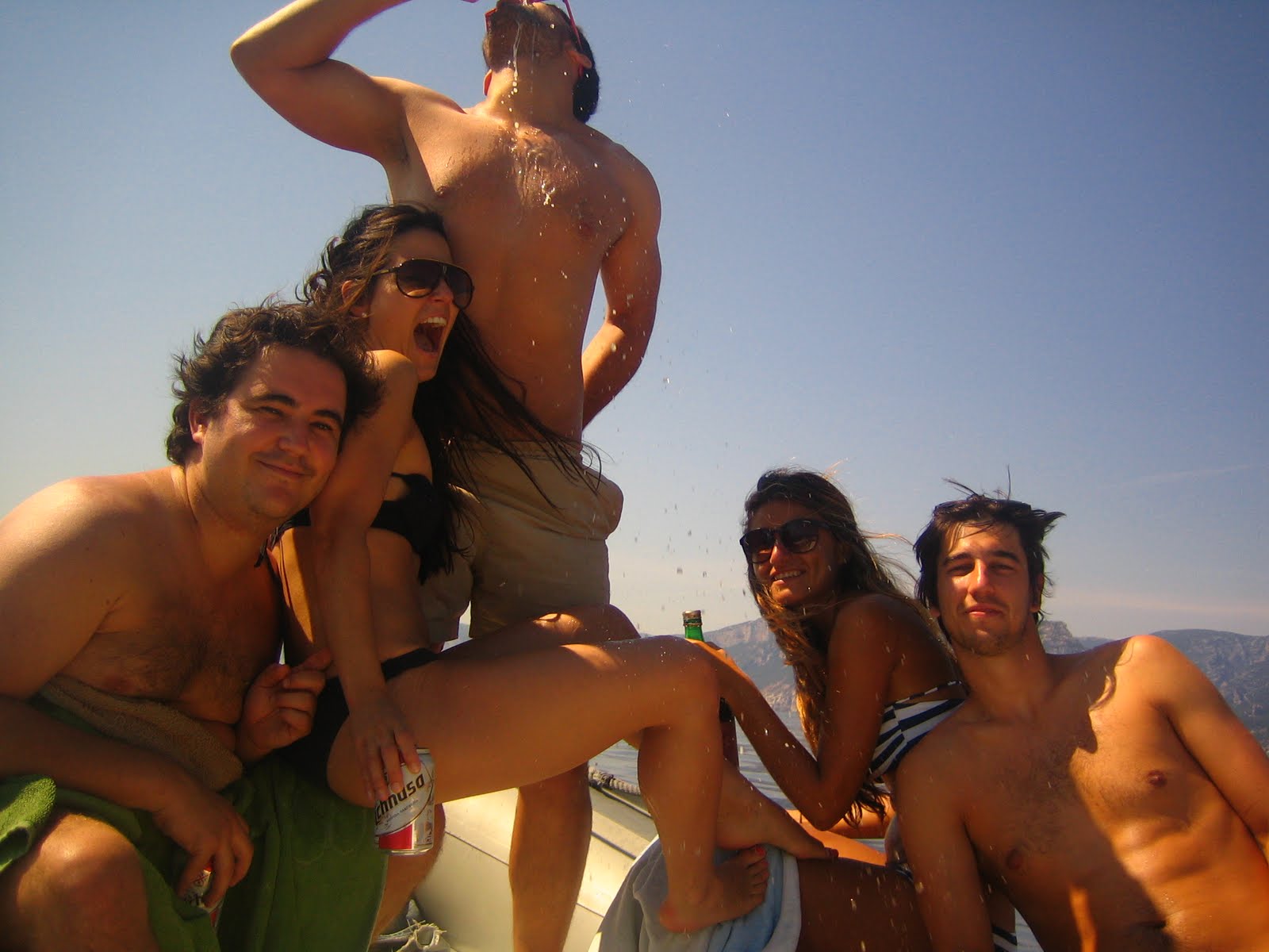 Al dia siguiente,tras dormir de lujo en los bungalo, del "remember de shower" y cocinar para mil fuimos a coger con nevera incluida nuestra ansiada barquita. Este dia fue meraviglioso, con amigos, con buena compañia, barca, playas increibles, sol... fue uno de los mejores dias de la erasmus sin duda. Despues de ver un pez espada, un pez volador, un delfin en el agua no se como me atrevi a tirarme al agua a 300 metros de la orilla.